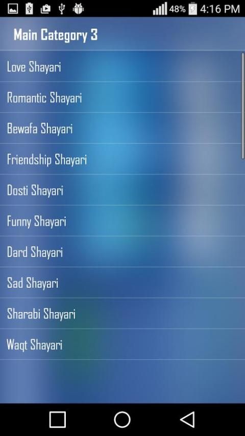 • Different categories provide like love, dosti, sad, bewfa, festival sms or status or more.
