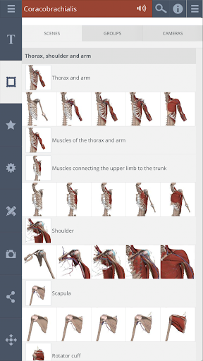 • La Galleria contiene 17 scene pre-impostati, progettate da un team interno di Esperti anatomici, per presentare chiaramente e comprensibilmente in modo approfondito anatomia regionale e sistemica della spalla. Ogni scena è divisa in cinque strati per fornire un maggiore controllo sulla profondità dell'anatomia mostrata; Facendo sartoriare l'anatomia che vuoi vedere semplice e veloce.