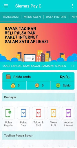 Applicazione Android Siemas Pay C è un'applicazione mobile gratuita per i membri fedeli di Siemas Pay c ovunque. Questa applicazione ti rende facile fare varie transazioni come la ricarica di ricarica, acquistare token elettrici, pagamenti bancari postpagati, buoni del gioco d'acquisto, ecc.