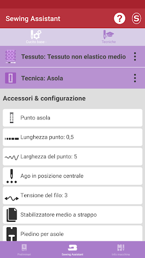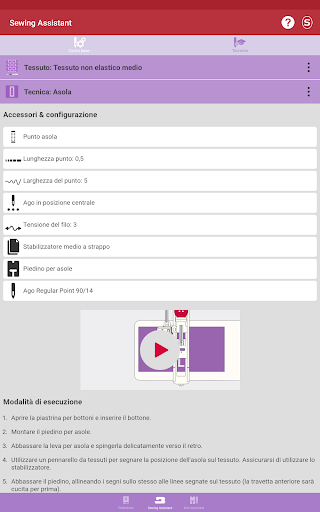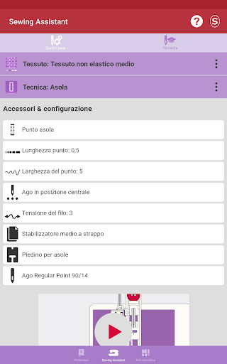 SINGER® è orgogliosa di presentare la nuova applicazione "SINGER® assistente al cucito" che è stata personalizzata e sviluppata per voi che siete nuovi nel mondo del cucito, ma che siete desiderosi di iniziare con la nuova macchina per cucire Singer. Supporta molti dei modelli di macchine SINGER®*, questa applicazione è una grossa mano che vuole educare e guidare l'utente attraverso la macchina, aiutare ad imparare come iniziare, come cucire e per di più, ottenere una buona qualità. Una volta scaricata l'applicazione si riceverà anche un tutorial su misura per la vostra macchina per cucire specifica e ottenere aiuto per scoprire nuove abilità da cucire lungo la strada. Con le istruzioni e le animazioni passo-passo non è mai stato così facile! Per saperne di più vedi sotto ogni sezione dell'app.