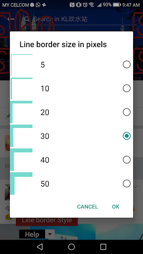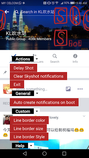 8. La seconda notifica, le opzioni Impostazioni, incluso l'album salvato aperto, l'AutostArt e la personalizzazione del bordo della linea.
