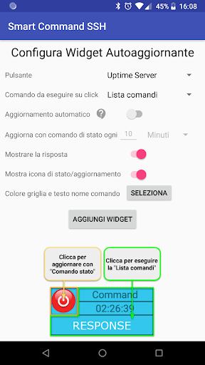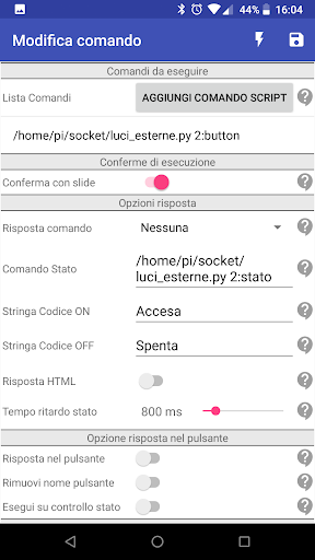 Se il comando inviato restituisce un output, esso può essere visualizzato nel pulsante, oppure sotto forma di notifica temporanea o in una finestra di dialogo. Inoltre sarà possibile interpretare l’output e visualizzare lo stato con un’icona accesa/spenta. Questa funzione è pensata principalmente per la domotica, così da rendere facile capire lo stato di un dispositivo.