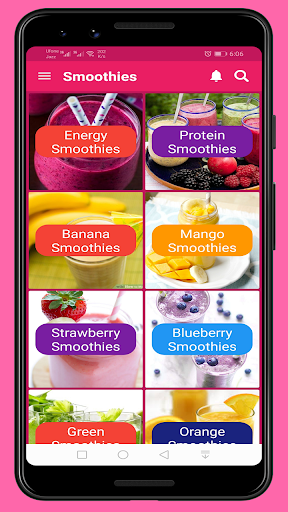 La nostra app Smoothies è bene APP organizzato e semplice in cui è possibile trovare le ricette per categorie e può cercare le ricette di frullato inserendo il nome di frullato.