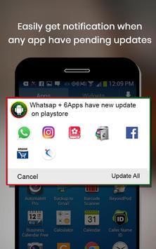 With Smart App Update Notification Alert you will get all the details of pending updates on your phone Notification.