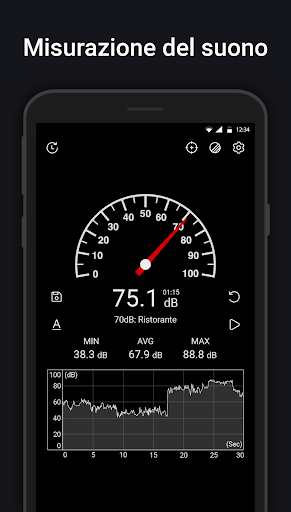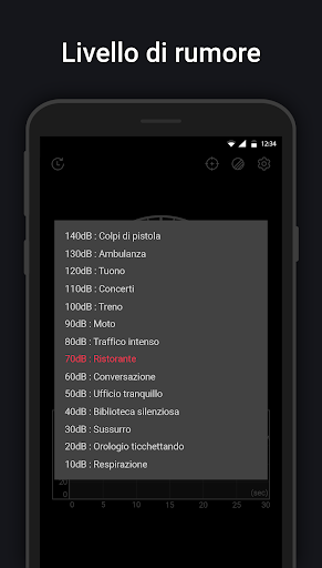 Fonometro utilizza il microfono del dispositivo per misurare il rumore ambientale in decibel (dB). Il valore del misuratore del suono di decibel (dB) potrebbe variare con il misuratore del suono effettivo.