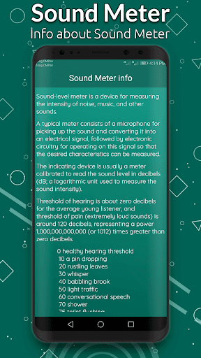 Sound meter – decibel meter uses phone or tablet built-in microphone and result of measurement are shown in chart. Sound meter (db meter) turn your device into professional sound level meter (spl meter).