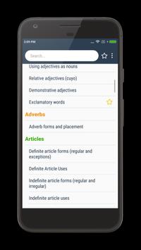 More than 100 short, easy-to-understand explanations of Spanish Grammar topics. Grammar articles: -Adjectives -Adverbs -Articles -Conjunctions -Gender -Number -Prepositions -Pronouns -Pronunciation -Verbs