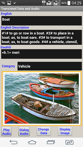 Questa versione professionale consente agli utenti di aggiornare i dati tradotti se lo utilizzano per insegnare agli altri perché ci sono molti modi per parlare una lingua. Abilita inoltre agli utenti di creare nuove traduzioni di dati, registrare e riprodurre o cancellare o eliminare dati audio swahili, registrare e riprodurre o eliminare la finestra di dialogo Audio Swahili Data.