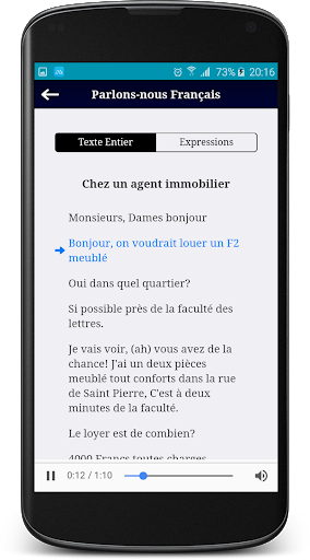 inglese Let's DEVE UNA APPLICAZIONE SEMPLICE E GRATUITA, contiene un elenco di discussioni, clicca sulla discussione che vuoi ascoltarti Trova un lettore audio nella parte inferiore dello schermo, avvia il lettore e leggere il testo.