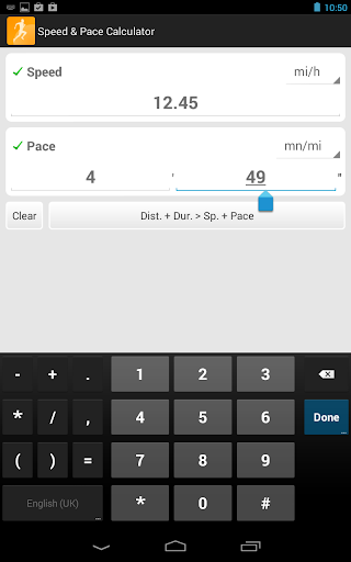 Calculate your speed and pace from the distance and the duration of your course!