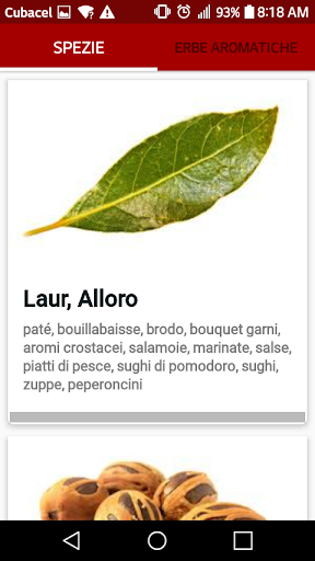 SEMPLICE DA USARE: avrai un elenco di tutte le spezie ed erbe e potrai qualsiasi elemento nell'elenco e vedrai la sua descrizione e il suo usi culinari
