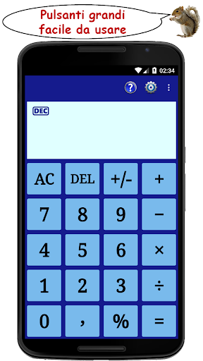 Una calcolatrice semplice, facile da usare, progettata per essere più funzionale rispetto al modello installato di default - include anche una Mancia Calcolatrice e una Prestito Calcolatrice, entrambi i quali è possibile accedere dal menu - caratteristiche del calcolatrice principale includono: