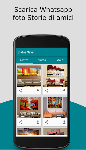 status downloader per scaricare foto e video sullo stato di download di WhatsApp Story Images, Video e GIFs Posted by Friends su WhatsApp. Puoi facilmente visualizzare le recenti WhatsApp immagini e video storie condivise dagli amici. Basta aprire la nostra applicazione e fare clic su Story che si desidera visualizzare e scaricare!