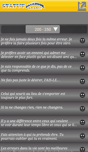 Scarica l'applicazione e goditi il Le migliori citazioni di stato, incluso lo stato divertente, lo stato di scherzo, lo stato tristi, lo stato dell'amore, lo stato del bello, lo stato dell'uomo, lo stato della donna, lo stato della vita, lo stato intelligente, lo stato di amicizia, lo stato di Facebook, lo stato di whatsapp e le citazioni tradizionali marocchine.