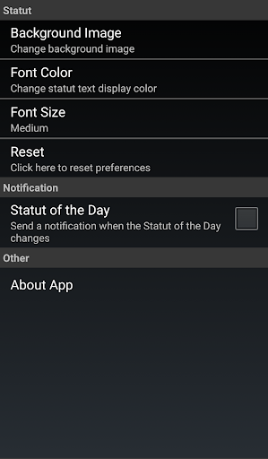 • Impostare un widget App nella schermata principale per mostrare lo statut del giorno e godere di un nuovo aggiornamento di stato ogni giorno.