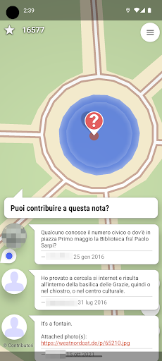 Questa app trova dati da verificare e da completare vicino a te e li mostra c su una mappa. Ciascuno di questi dati presenta delle domande a cui rispondere per completare le informazioni sul posto.
