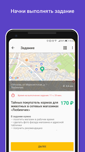 - добираешься до точки (в приложении есть оффлайн-режим и задание можно выполнить без наличия интернета)