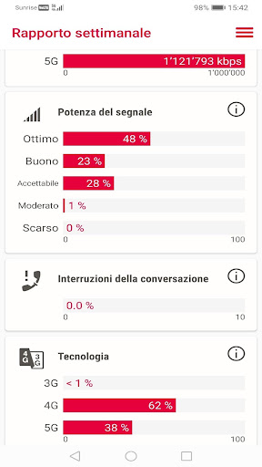 Per mezzo dell'app vengono registrate alcuni parametri riferiti alla specifica qualità della rete mobile ed è inoltre possibile ricevere informazioni sulla copertura di telefonia mobile Sunrise in quel momento per la Svizzera.