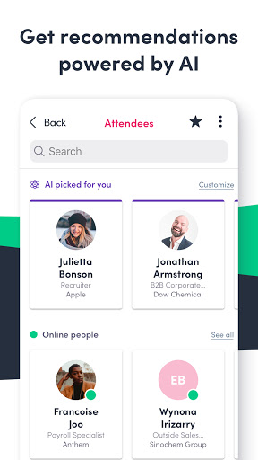 SwapCard è un'evento AI-Powered e una piattaforma di matchmaking che esegue eventi di successo in persona, virtuale e ibrido.Ai viene utilizzato per aumentare la matchmaking, collegando gli utenti con le persone più rilevanti in base ai loro profili e viaggi di eventi personalizzati.Con i dashboard espositori dal vivo per tracciare i roi, i programmi di eventi in tempo reale, le caratteristiche di coinvolgimento del pubblico e le opzioni di videochiamata, SwapCard offre preziose esperienze utente per tutti i tipi di eventi.
