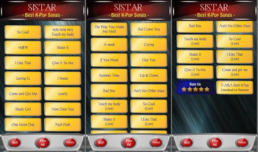 In questa app, tutte le canzoni di Sistar sono il genere K-POP e possono riprodurre streaming solo con Internet, anche non è possibile scaricare nulla.