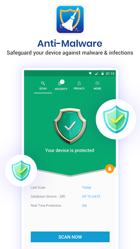 Smartphone Pleaner protegge anche il dispositivo dagli attacchi e dalle infezioni da malware.Con l'integrazione dell'app anti-malware, è possibile eseguire facilmente scansionare malware e prevenire la corruzione e l'infezione dei dati.