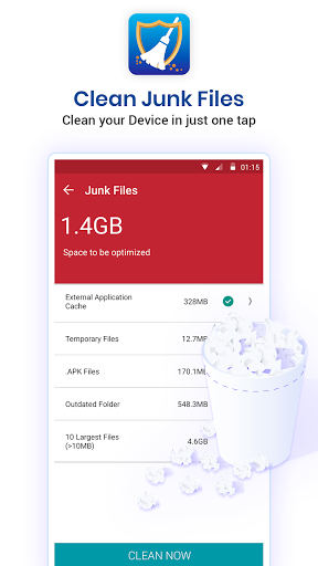 Con il detergente per smartphone, l'ottimizzazione della RAM è resa estremamente facile.Basta premere "Tocca To Clean" e tutti i tuoi problemi sono risolti.