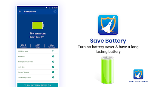 Cleaner per smartphone ti consente di analizzare il tuo dispositivo per l'utilizzo della batteria e disabilita le funzioni che non usi.Pulisci la tua RAM.Inoltre, mostra anche la temperatura del dispositivo.