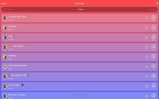 Publish to the Tize feed, and vote on your favorite tracks!