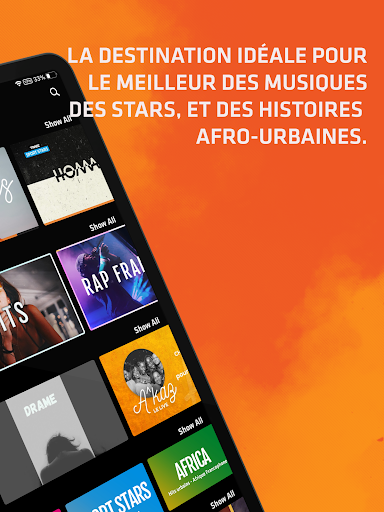 Lasciati intrattenere da playlist tematici che offrono il meglio degli Afrobeats, Kompa, Kizomba , Hip-hop, kuduro, offset coupé, dancehall, R & B, GQom, Amapiano.