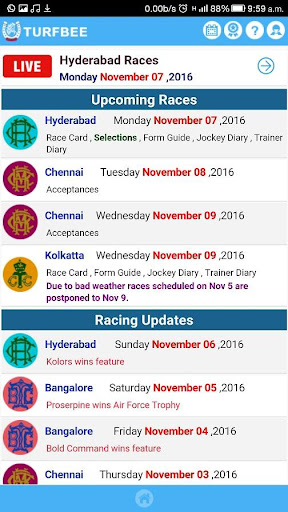 L'applicazione Mobile Turfbee è l'avventura delle aziende di RacingPulse ed è il prodotto di un team intraprendente di persone entusiaste per le quali le corse di cavalli sono una passione.Turfbee è dedicato a fornire informazioni complete sulle corse di cavalli indiane.