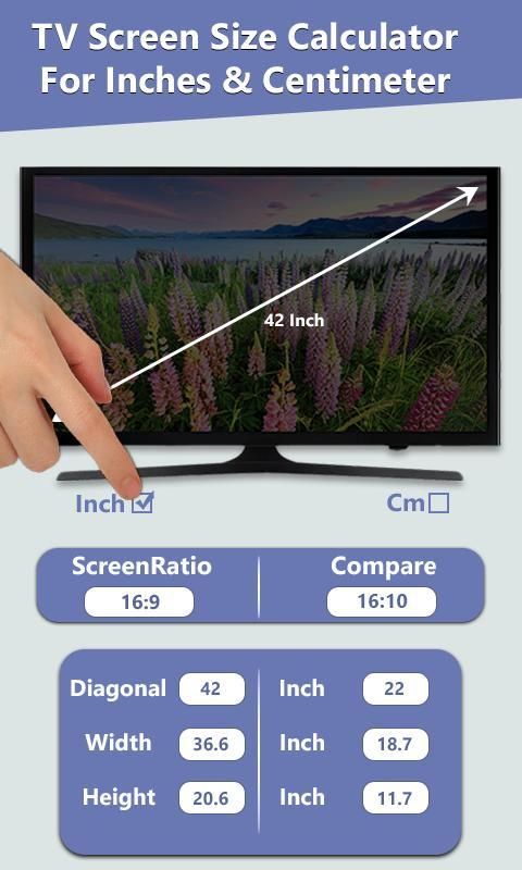 We have created the most simple to use app to calculate TV Screen Size easily. Are you going to purchase a new TV unit ? Why not check the actual TV screen size and compare it with others to purchase the best suitable to you.