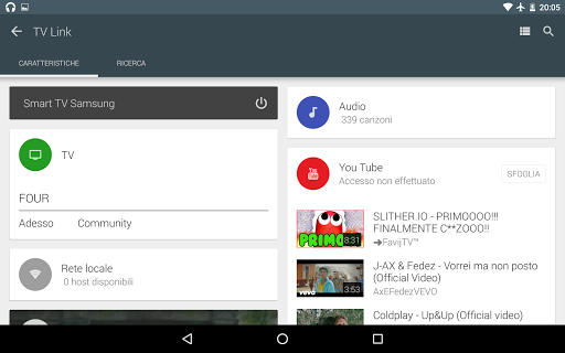 - Cerca e riproduci video da YouTube