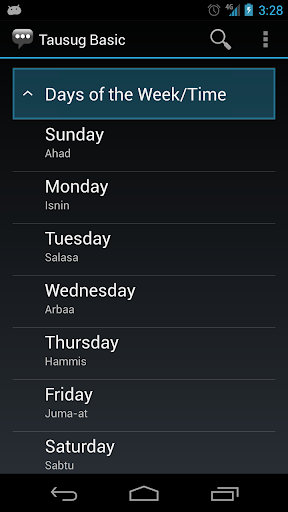 Usando questa app, è possibile selezionare una frase inglese e visualizzarne la traduzione e come pronunciarla in Tausug.