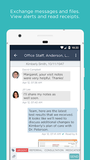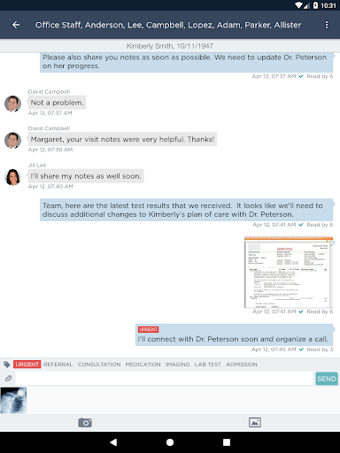 - Image and document viewing and sharing (photos, PDFs, lab tests, etc.)