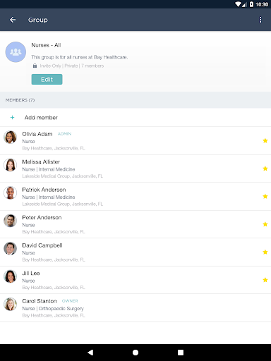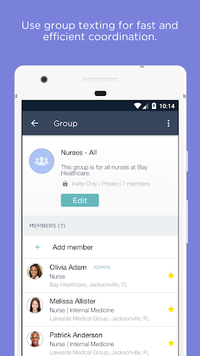 - Simple group texting for efficient coordination across departments and patient care teams; handling of staff call-offs, patient admissions, and other workflows