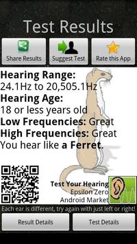 From this, it tells you your highest and lowest audible frequencies, your "hearing age", and a fun animal that represents your hearing abilities.