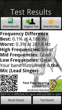The results tell you what frequencies you can differentiate over the hearing spectrum and suggests an instrument based on your answers.
