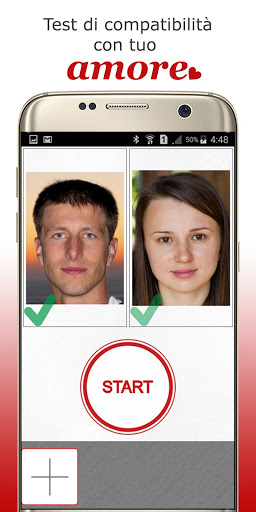 Test di compatibilità per foto app è molto semplice da utilizzare: "Start" è sufficiente aggiungere la tua foto e una foto del vostro partner e stampa pulsante e in pochi secondi si ottiene il risultato!