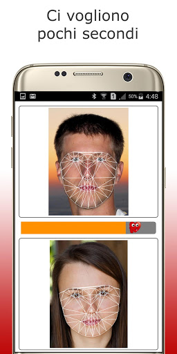 Applicazione Test di compatibilità per foto analizza il volto di fotografie, utilizza gli algoritmi basati su opere di psicologi moderni e fisionomisti e ti dà la semplice risposta a una domanda - quanto si è compatibile con la vicenda?