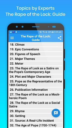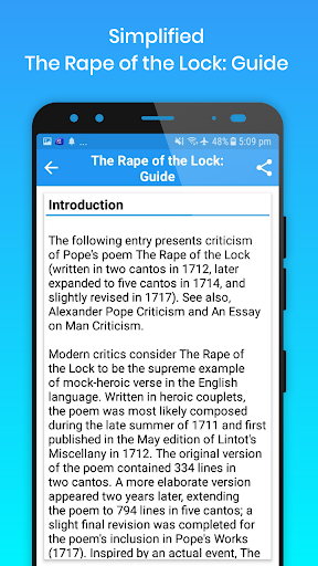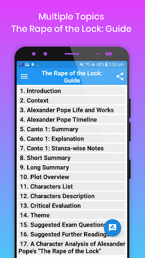 Questa applicazione guida funziona sia online che offline, e contiene 36 argomenti di base su una delle famose poesie di Alexander Papa, lo stupro della serratura.