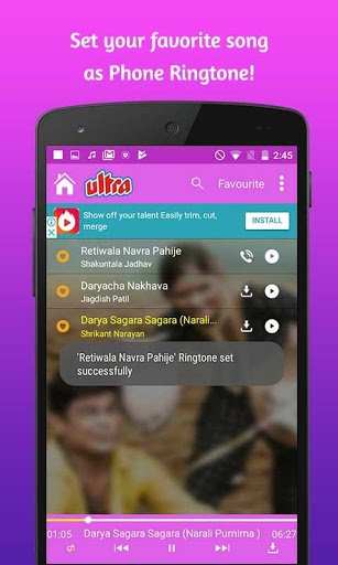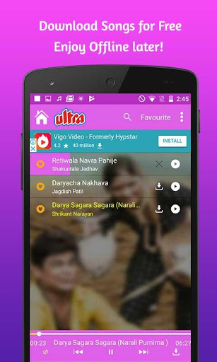 Ultra Media & Entertainment brings to you huge collection of Koligeet Songs.The app hosts a plethora of Songs, in audio and video format which can be marked as favoutires and viewed unlimited number of times. The app also contains caller tunes.
