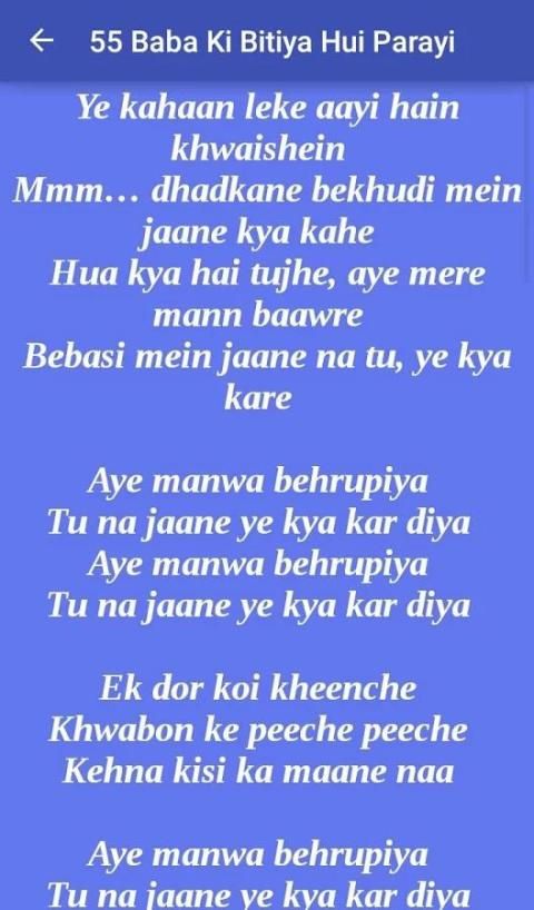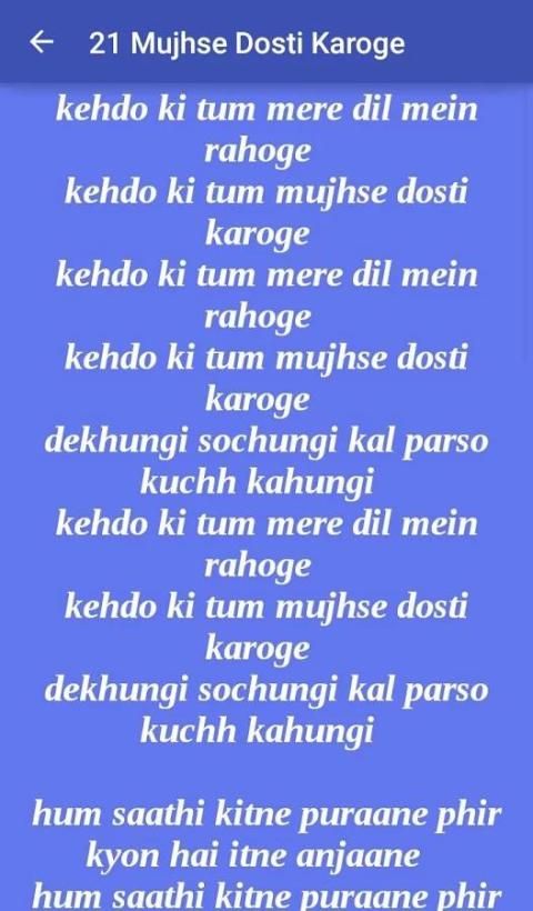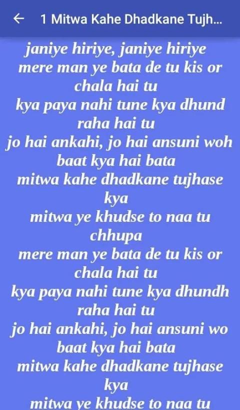 Hey, it happens, Every times we listen to a song on the radio or mobile while we are driving. And you sing along until a friend laughs at you and says, Those are not the words! And you go Huh, what, really? as your world shatters around you. So, we providing some popular Bollywood Song Lyrics for you who loves to sing a song. And also many people want to make it as Whatsapp status as Bollywood song. For this type... you are in right place. I hope you will like my post.