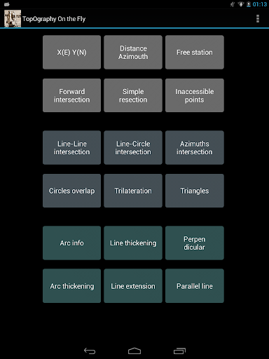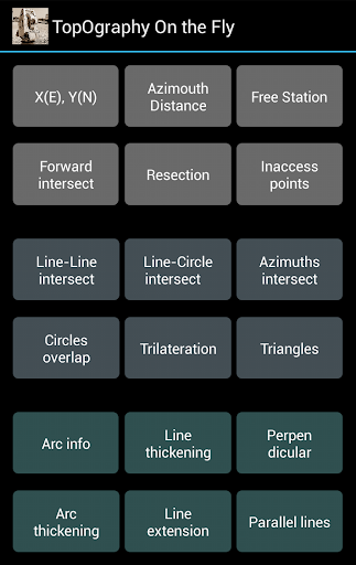 La topografia al volo è una suite di strumenti di rilevamento del terreno. Ti consente di avere calcoli di rilevamento complessi sul campo rapidamente con la massima precisione. Il design è semplice secondo necessità in base alla pressione del lavoro. Il vantaggio è che può essere utilizzato solo con una semplice stazione totale o in aggiunta con strumenti più complessi e GPS.
