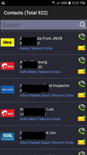 - View list of your Contacts with Area and operator name
