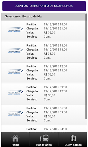 Aplicativo para buscar e comprar passagens de ônibus da empresa Personal Bus - Translitoral com Translado de Santos e Guarujá para os Aeroportos de Congonha e Guarulhos.