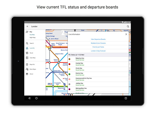 ● Informazioni in diretta ● Quando è disponibile una connessione Internet, opzionale "Informazioni in diretta" sullo stato corrente dei servizi di trasporto e le schede di partenza della stazione di tempo reale possono essere visualizzate consentendo di pianificare i tuoi viaggi in anticipo ed evitare qualsiasi potenziali ritardi. Unico per questa applicazione è la possibilità di disattivare i servizi che sono fuori atto e calcolano automaticamente un percorso alternativo.