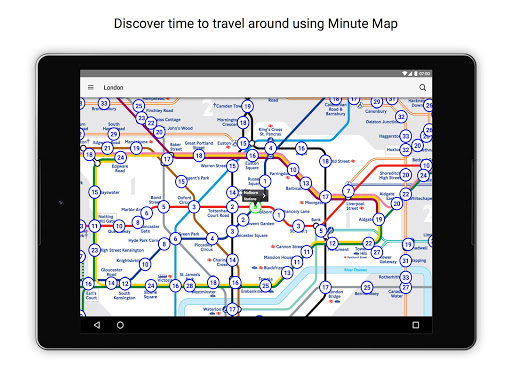 ● Mappa dei minuti ● Questa funzione unica fornisce una vista dei tempi di viaggio da qualsiasi posizione sulla mappa. Ciò è utile per ottenere un senso di scala e connettività del sistema di trasporto e può fornire alcuni risultati interessanti.