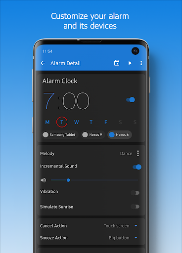 Turbo Alarm è completamente GRATIS e SENZA PUBBLICITÀ. È una sveglia estremamente personalizzabile, che, grazie alla moltitudine di opzioni disponibili e configurazioni possibili, è in grado di svegliarti esattamente nel modo che preferisci: si adatta perfettamente ad ogni utente possibile.