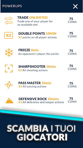 Una delle funzioni più popolari di UFL sono le Power-Up. Usa i tuoi 10 minuti di doppi punti; rilancia un giocatore che pensi possa fare la differenza e poi festeggia se uno dei tuoi giocatori segna un goal o effettua un assist importante! Vuoi provare a fermare un avversario? Blocca un loro giocatore per 10 minuti!