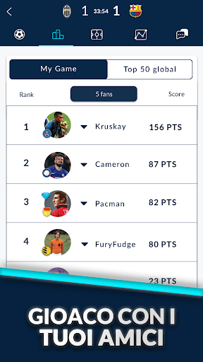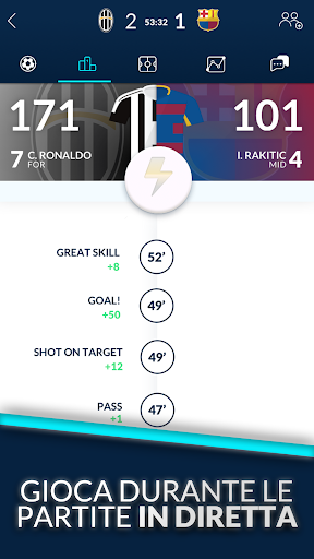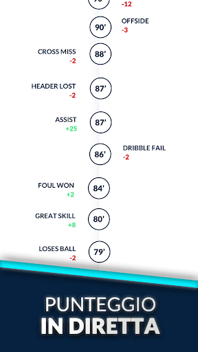 Segui la tua timeline per essere sempre aggiornato sul punteggio dei tuoi giocatori. Il tuo punteggio aumenta per ogni azione compiuta da uno dei tuoi giocatori sul terreno di gioco - passaggi, intercettazioni e molto altro ancora! Controlla il tuo punteggio in tempo reale rispetto a quello dei tuoi avversari.